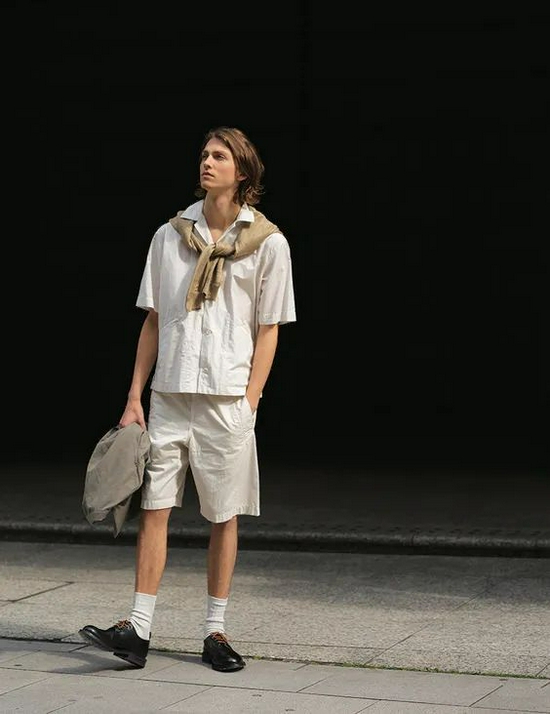 也可以把衬衫别进腰间,这样在拉长身材比例的同时还会带来一种稚嫩的学生气质。同时在领口搭配一条丝巾,丰富造型细节,可以让人瞬间回想起学生时代的温柔学长。