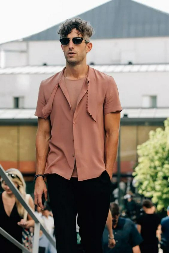 粉色在造型中的运用,本就是营造温柔感的一大利器。身着裸粉色衬衣的龚俊,气质优雅温润,简直是行走的温柔制造机。