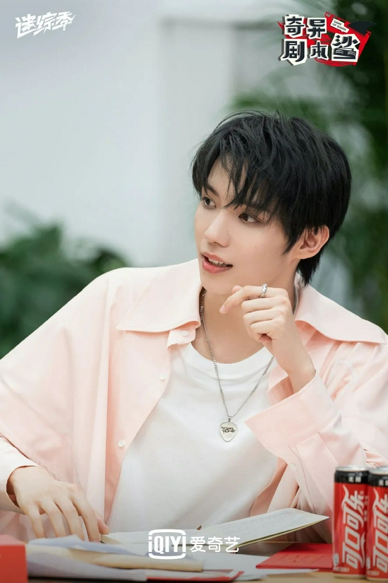 在近日播出的《奇异剧本鲨》中,萌新玩家罗一舟加入鲨鱼车队,和几位mc一起开启脑洞学校的新篇章。在节目中他化身校园中的“谭学长”,一身裸粉色的长款衬衫,温柔清新又风度翩翩。