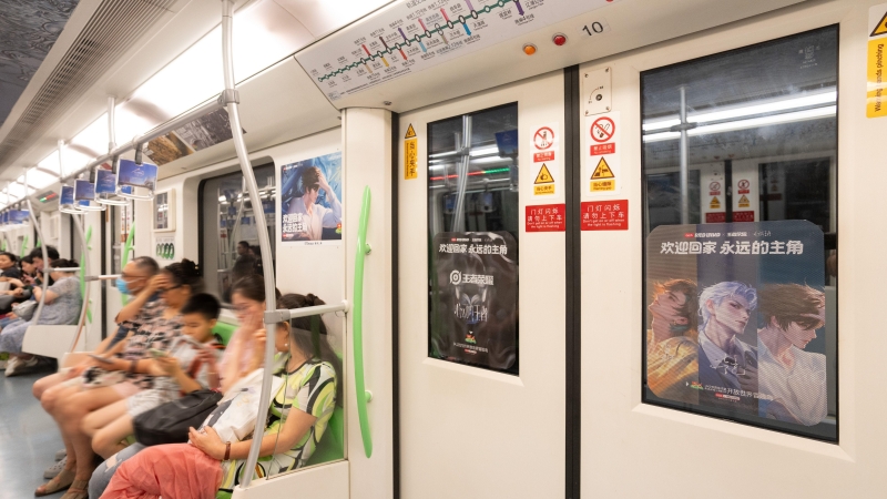 与跨界KV同步上线的,还有上海地铁广告。玩家争相前去打卡,纷纷感慨“上班路上坐到心动的王者号了”、“坐地铁偶遇我老公是什么体验”。